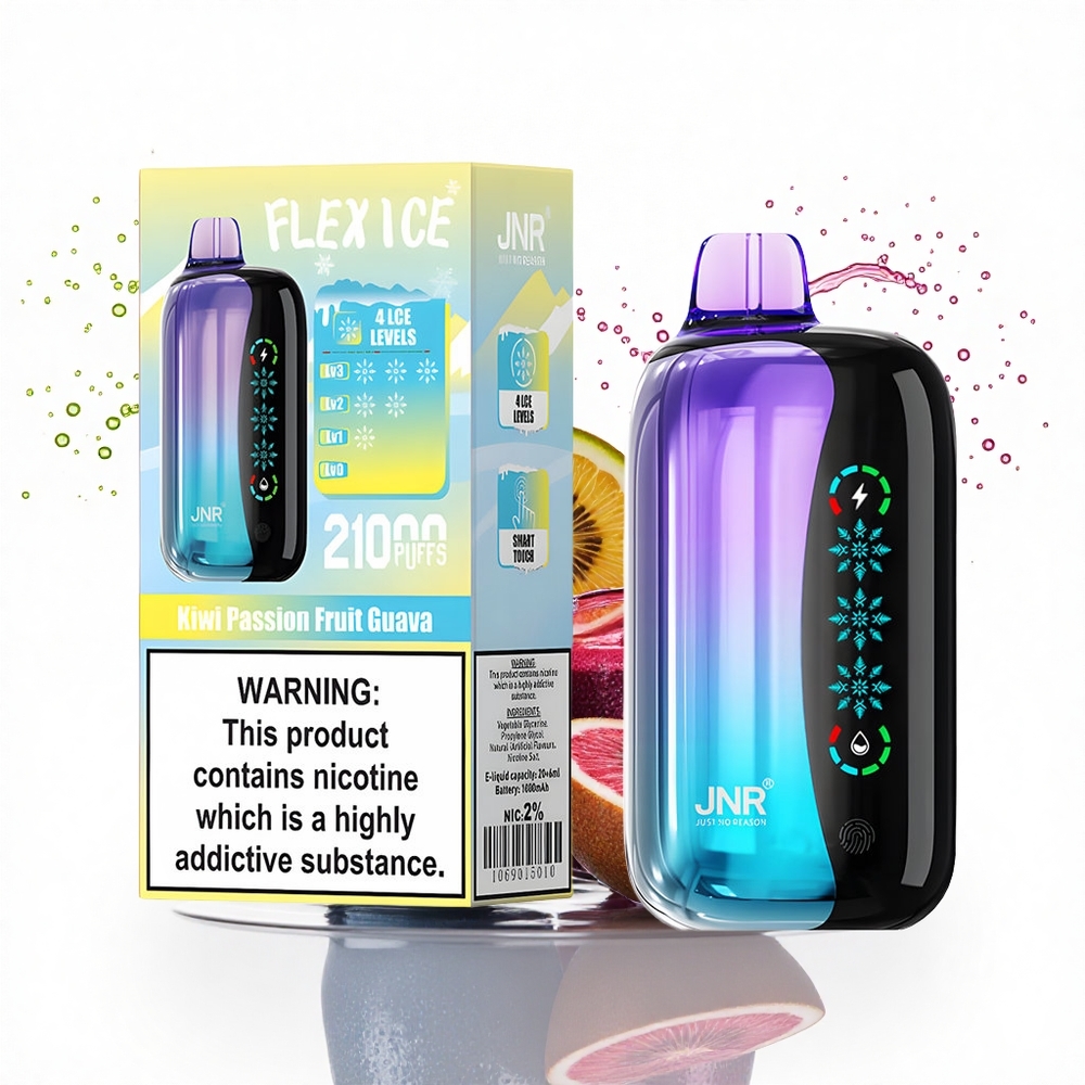 A JNR Flex Ice 21000 Puffs kiváló nagykereskedelmi értéket kínál a magas puffszám, divatos dizájn és rugalmas nikotinopciók miatt. Tökéletes választás a trendet követő, egyéni igényeket kielégítő termékek piacán.